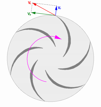 the impeller on the liquid |