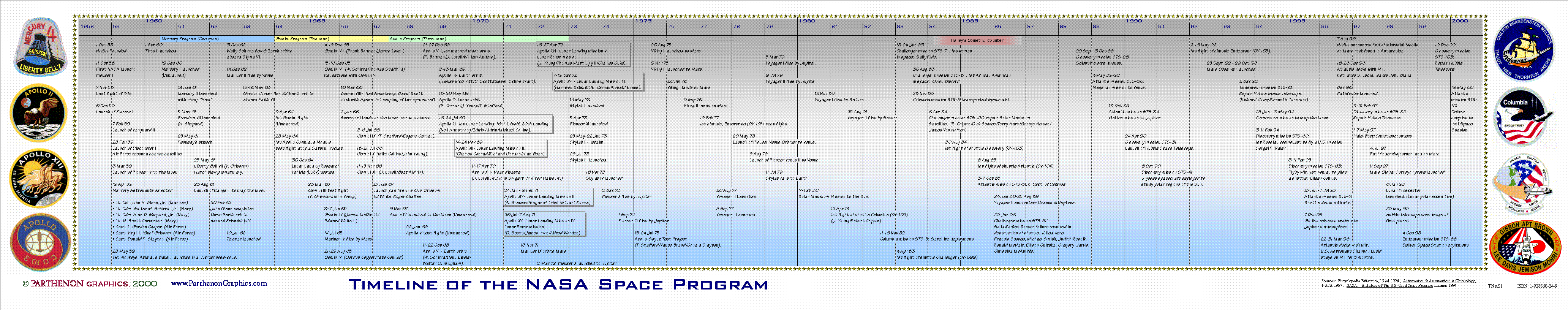 Details include the Mercury, Gemini, and Apollo programs, as well as