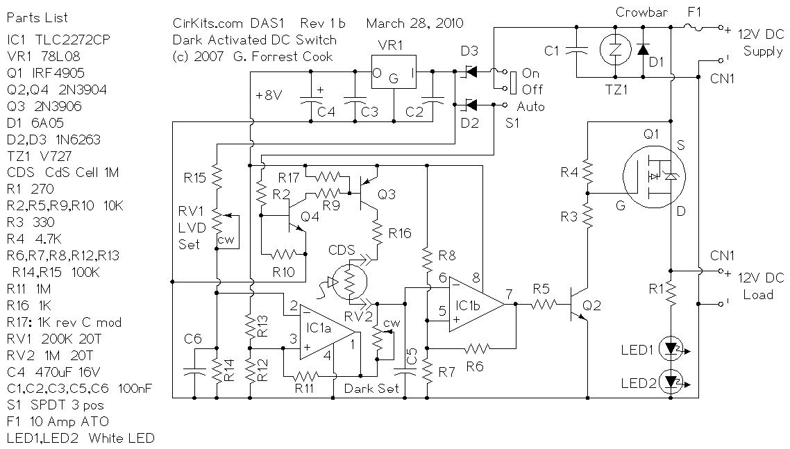 Solar Powered Night Light LM2941, TLC27L4, CDS photo sensor |