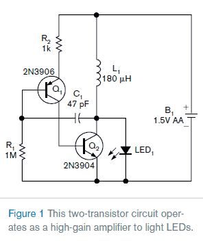 supply LED power supply - Single AA cell powers two LEDs at constant current |