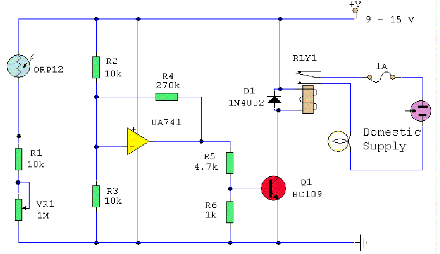 Light-Dark Sensor width opamp 741 and LDR as sensor |