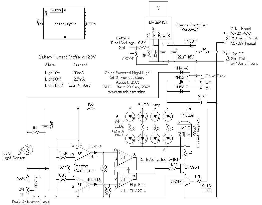 Night Light LM2941, TLC27L4, CDS photo sensor |