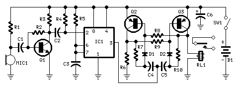 Sound operated switch using a simple transistor circuit |
