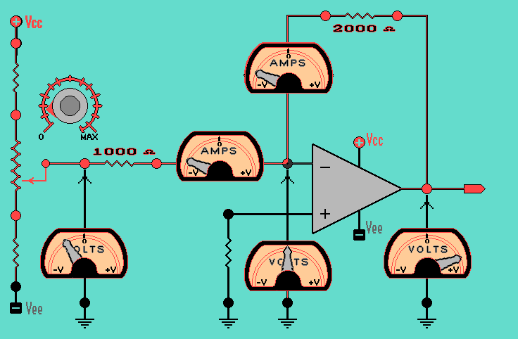 Operational amplifier simulator summing amplifier, inverting amplifier, difference amplifier, differentiator, integrator |